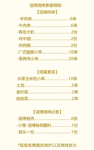 599元(含一份烧烤套餐、现场活动费及物料费用)