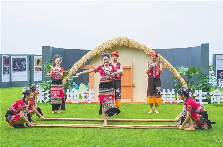 六月十日,“文化和自然遗产日”主题宣传活动在海口启动。图为竹竿舞表演。海南日报记者 李天平 摄
