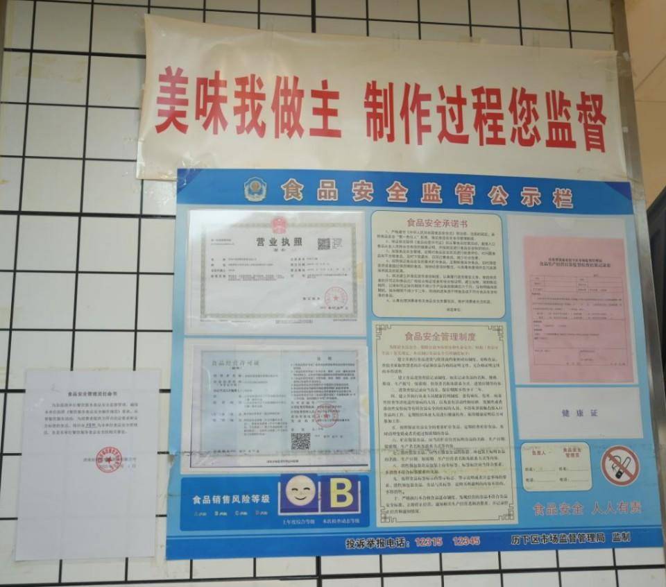 在门店的食品安全监管公示栏里,门店营业执照、食品安全承诺书、食安管理制度、经营许可证等一应俱全。由于员工较多,门店还开辟了专门的健康证公示栏,里面公示了所有门店员工的健康证。门店所有的员工都要进行岗前培训,培训合格以后才能上岗。