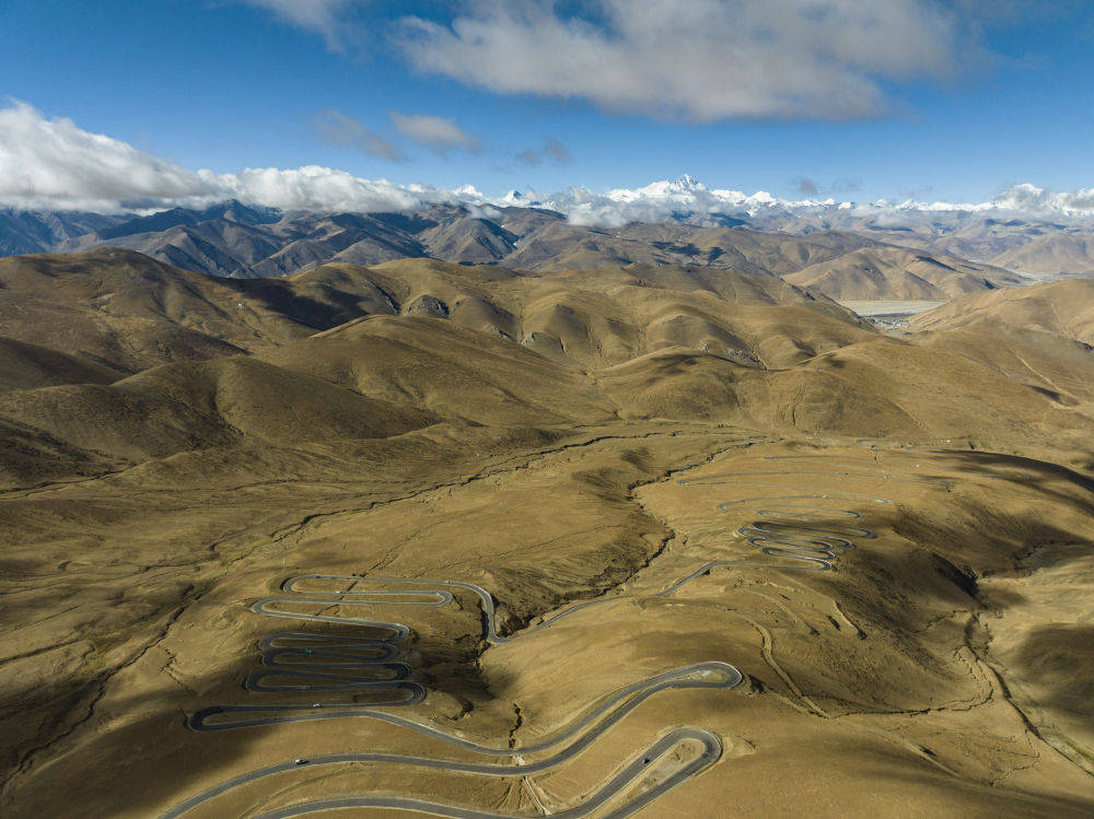 这是在海拔6000米左右高空拍摄的通往珠峰的公路(5月26日摄)。