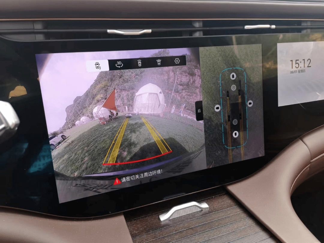 在倒车或者通过狭窄路面时,360影像可以在车辆四周构建电子围栏。车辆接近障碍物,屏幕中障碍物一侧的水波纹会发生形变,基本可以避免因盲区造成的剐蹭。