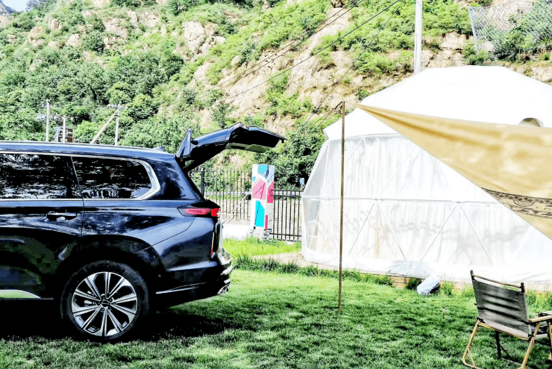 酒足饭饱,天色变暗,星空下点亮露营灯,开启车内的音响系统和氛围灯,就可以肆意畅谈人生了。