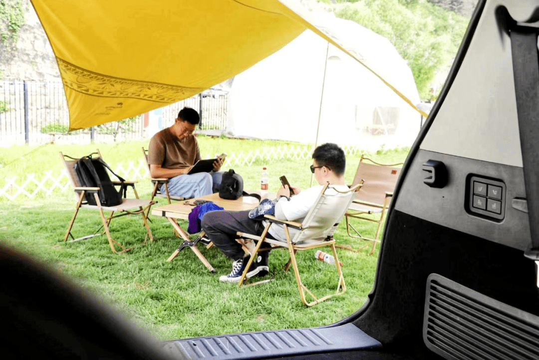 午后的营地相对较热,哪怕是坐在天幕下方也不是很舒服。这时,坐在副驾打开女王模式,一边欣赏窗外风景,一边享受着惬意凉风,聆听着23扬声器Lion音响的美妙旋律,绝对要比呆在没有空调的露营房里还舒服。