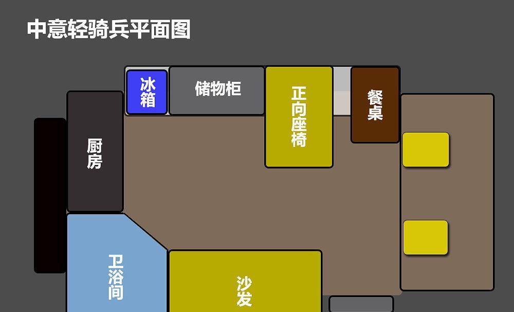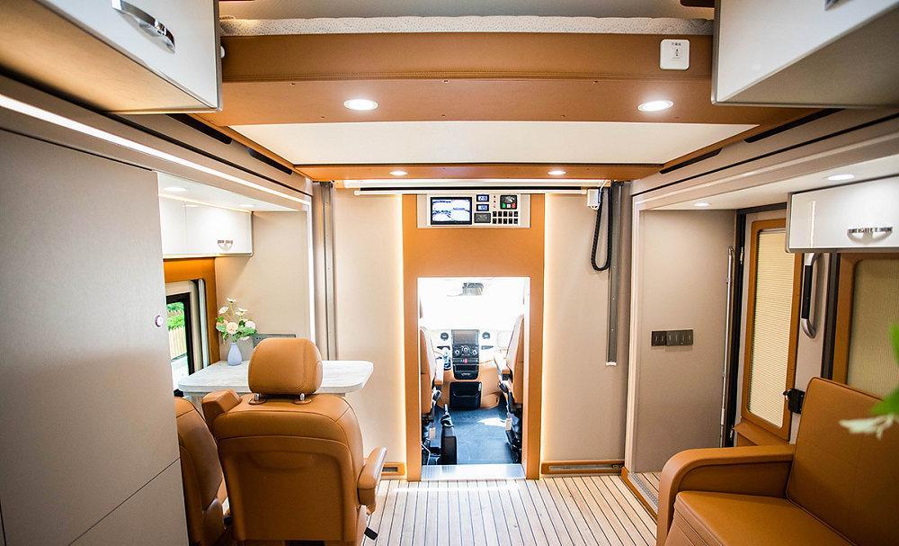 从布局形式上讲,轻骑兵与重骑兵非常接近,整体内饰氛围也很相似,实拍车核载4人,会客区可乘坐2人。