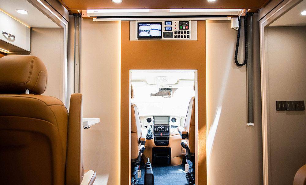 驾驶室与方舱设有通舱,实际测量的大小为130x70(cm),虽然没有完全开放式通舱进出方便,但完全可以应对用户进出。