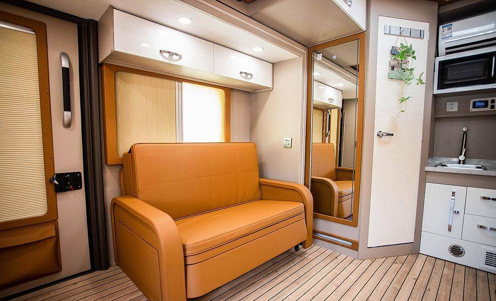 车身尺寸方面,新车的长/宽/高分别为5995x2465x3350(mm),作为一款方舱房车,虽然没有额头,但厢体高度依然超过了3.3米,实测内部高度超过1.9米,空间可观。