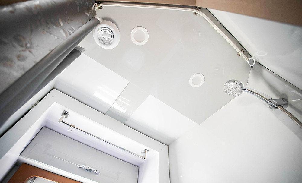 采用中意房车专利设计的伸缩式卫浴间继续运用在中意轻骑兵上,完全展开后即可形成一个相对宽裕的空间。卫浴间底部铺设有防水地板,主要配置抽拉式坐便器、淋浴花洒、镜面储物柜、毛巾架、浴帘、固定洗手池、3kg洗衣机等。
