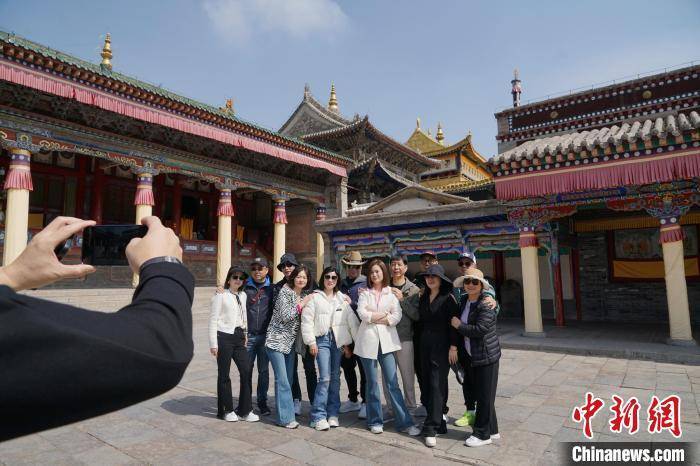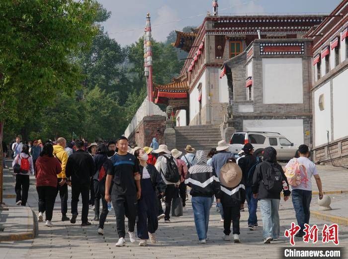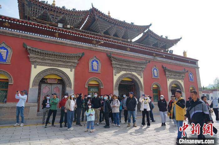 6月12日,青海塔尔寺游客众多。眼下正值青海省旅游旺季,不少游客来到青海省西宁市湟中区的藏传佛教名刹塔尔寺观光游览,打卡拍照。