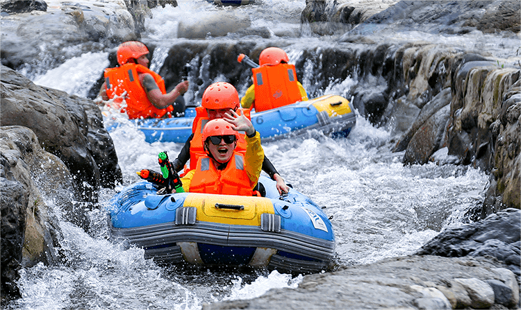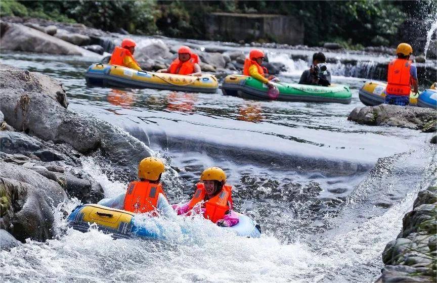 峨眉山漂流地处临江河,属于自然河道生态漂,总长度为5公里,落差达106米,前1.1公里为勇士惊险漂,激流飞湍,惊险刺激;后3.9公里则是休闲逍遥漂,水流缓慢,悠闲自得,特别适合亲子趣游。同时,全程有28名安全员为游客提供安全保障。