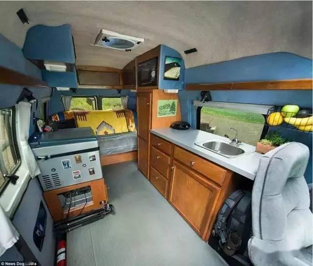 说起Travis 的房车,其实只是一辆旧车改造而来的,这辆1994的道奇箱型车原来的主人是Travis 的奶奶,或许她当时也不会想到,这辆旧车日后陪着孙子一起踏上了去往远方的旅途。Travis花了三个月的时间将这辆旧车改造成了现在的样子,厨房、卧室 一应俱全。