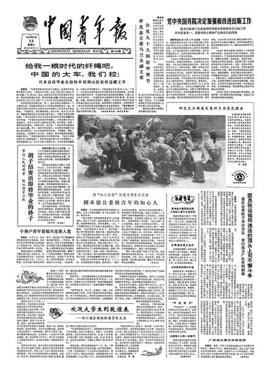 1983年6月28日《中国青年报》一版刊发报道《欢迎大学生到敦煌来》。