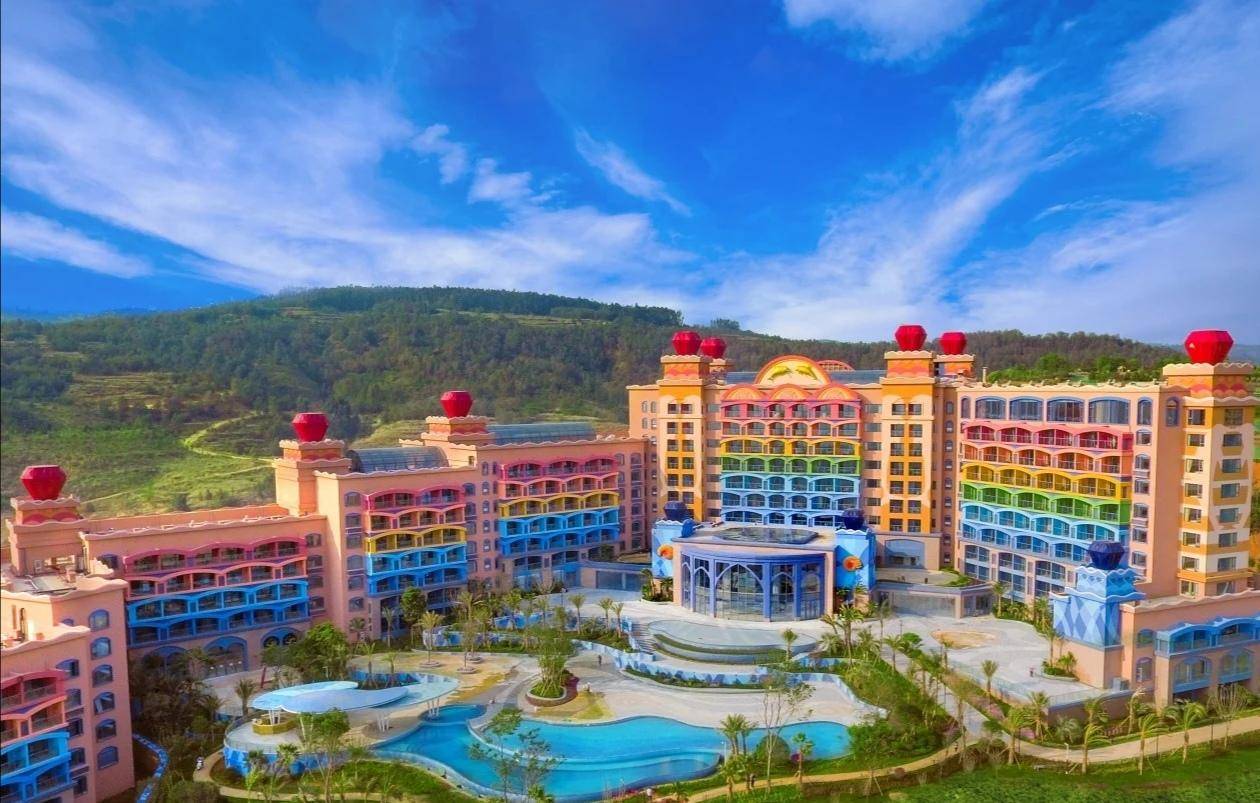 还在建设中的主题乐园,目前化石展览馆、亲子酒店、海洋馆都已经开放,非常适合亲子出游,不用去海边,就能和海豚亲密接触,七彩的酒店像极了动画里的城堡。