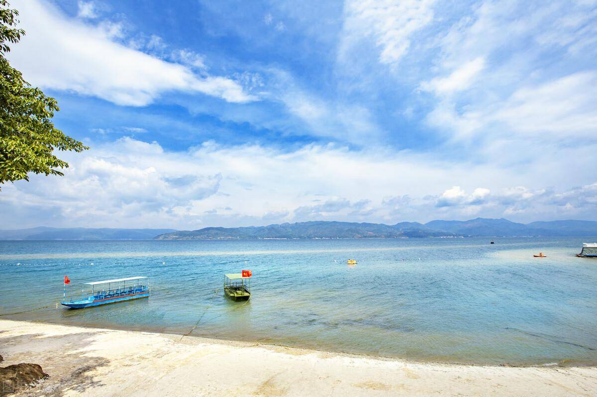 琉璃万顷抚仙湖的湖风拂面。这里的沙滩比较冷清,没有很多人,可以和海鸥近距离接触,还能潜水。白沙、椰树林、棕榈树、紫色马鞭草、彩色小木屋。每一张照片,都能拍出在海边额感觉。