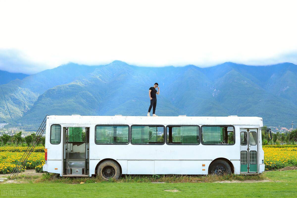 往洱海的方向走,是白色巴士。废弃的大巴车上,想必很多人的朋友圈照片,都来打过卡。