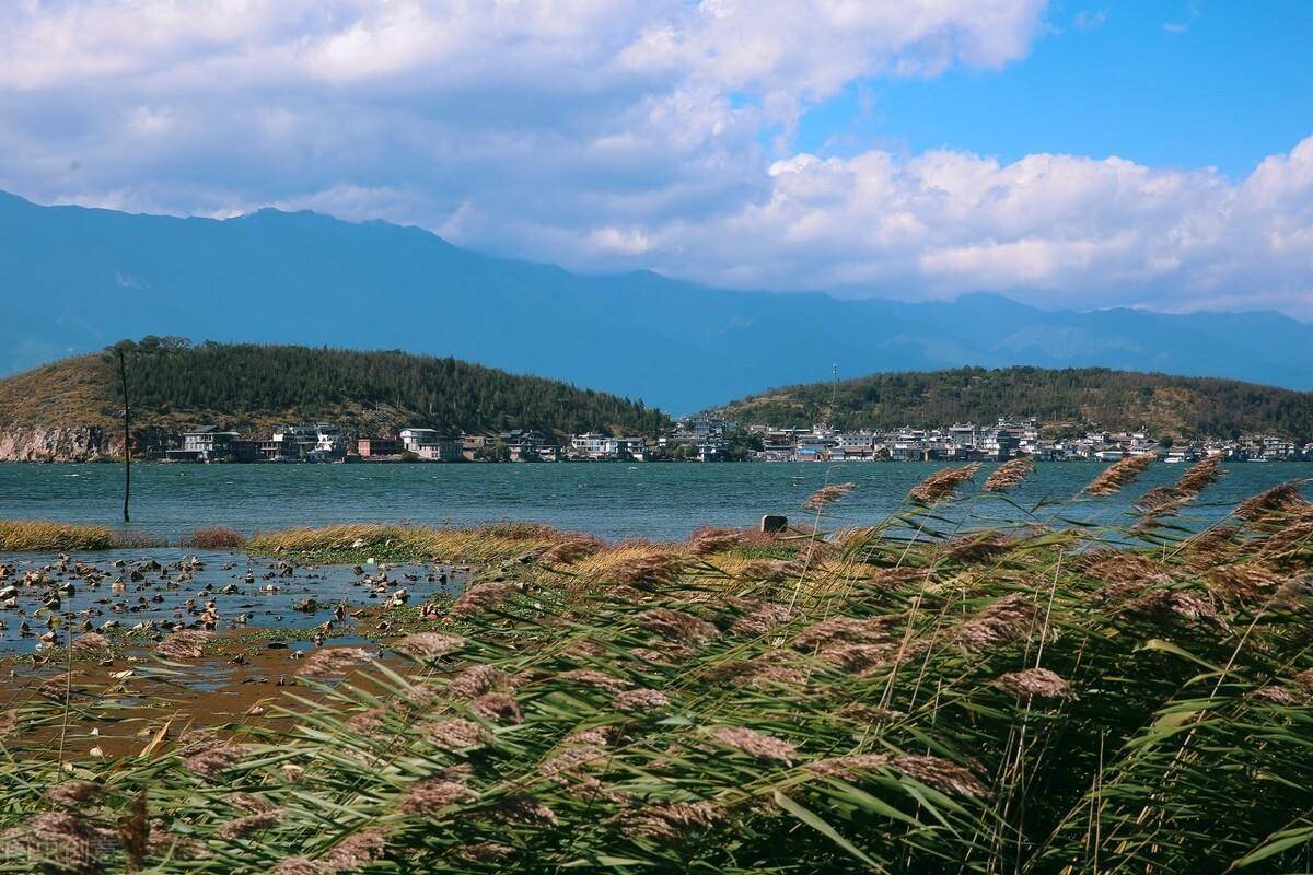 2-3月的南村,正是芦苇飘荡的季节,站在芦苇荡里拍照,身后是风平浪静的洱海,照片很难拍得不好看。