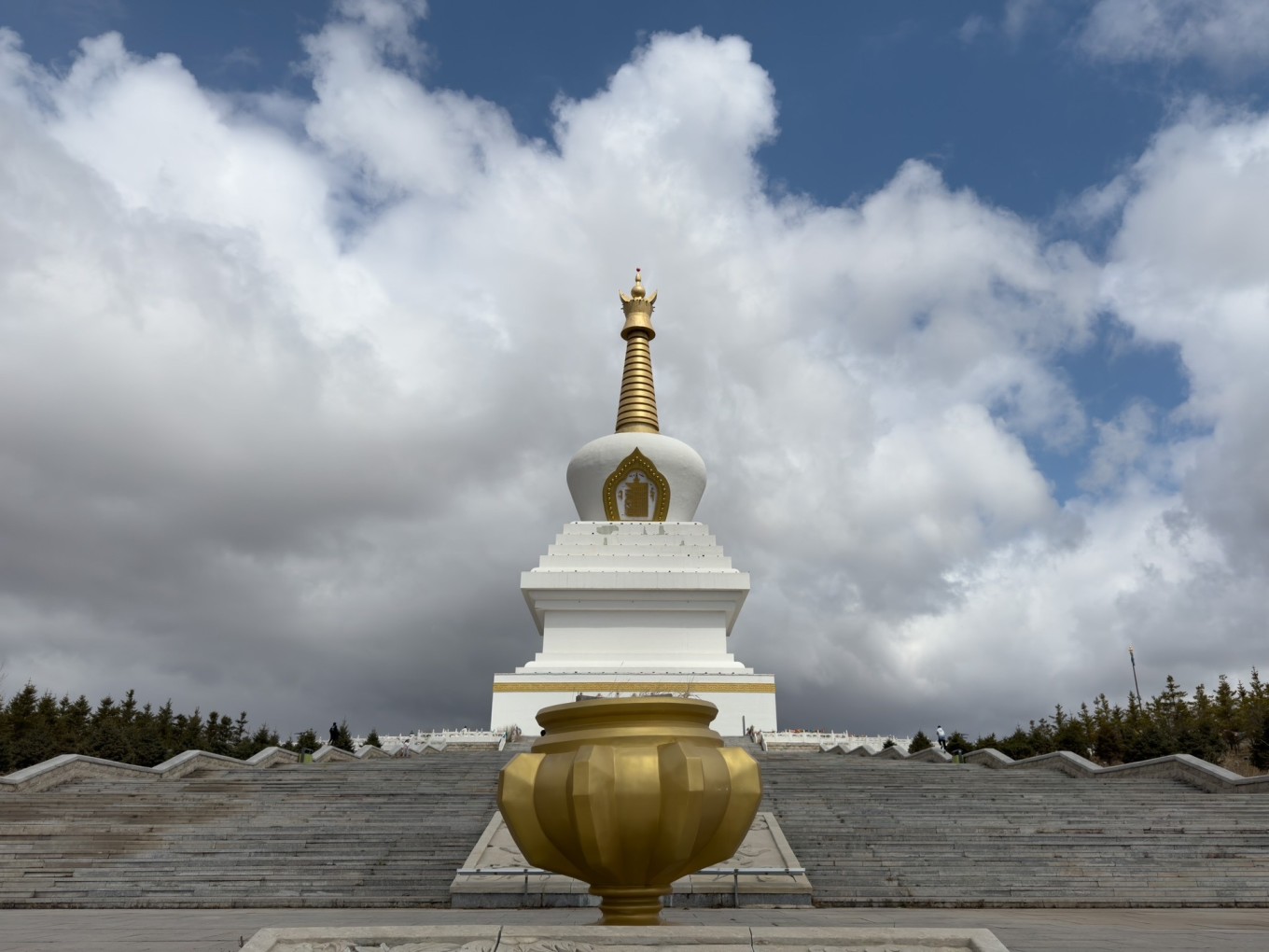清晨、走上面包车,去寻觅九曲莫尔格勒。到 呼伦贝尔 的首府,旅行的人多了起来。即便季节不对、仍是满满一车。第一站是一个类似前一天的博物馆,已没多少印象了。第二站叫达尔 吉林 寺,一个新修的寺庙。老妈眺望着远处的佛塔,许是今生的第一眼。走进才发觉是现代一个老总修的 不过这么大的,真是第一次见到,心诚则灵,不问时代~