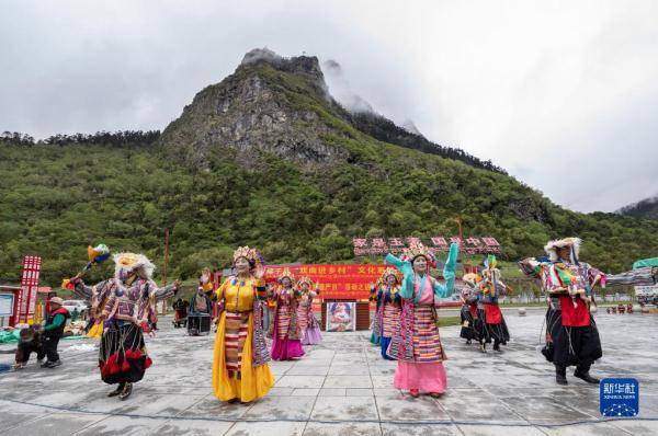 6月10日,来自隆子县的文艺工作者为玉麦乡的居民表演藏戏。