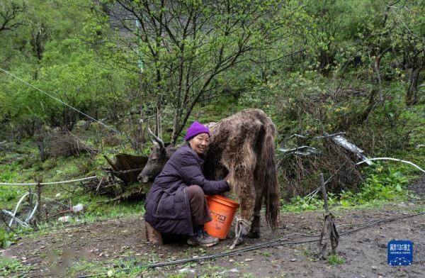 6月10日,央宗从牧场小屋里走出,准备去挤奶。