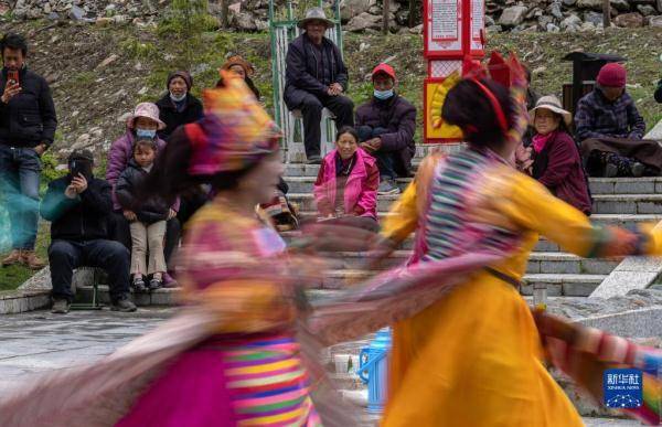 6月10日,玉麦乡的村民欣赏来自隆子县的文艺工作者表演的藏戏。