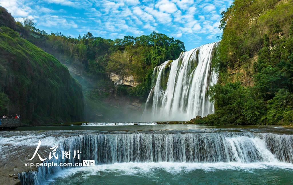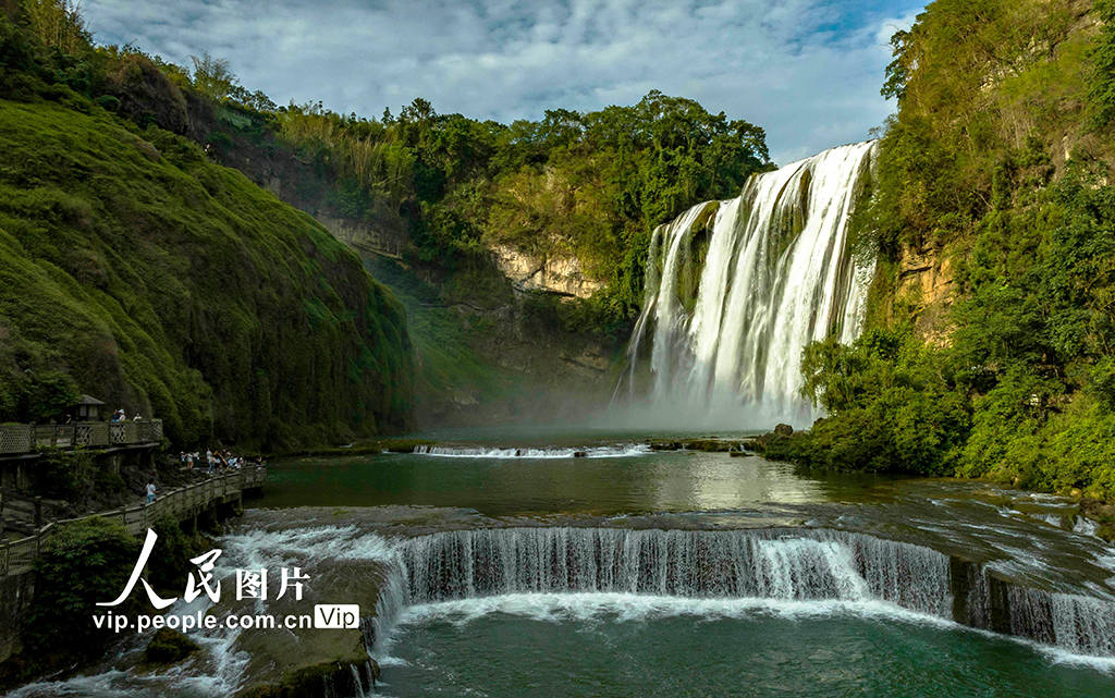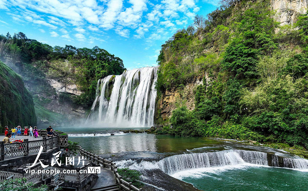 仲夏时节,位于贵州省安顺市的黄果树瀑布景区已进入一年中的最佳观赏期,大瀑布奔腾而下、气势磅礴、蔚为壮观,前来观赏游玩的游客络绎不绝。范晖摄(人民图片网)