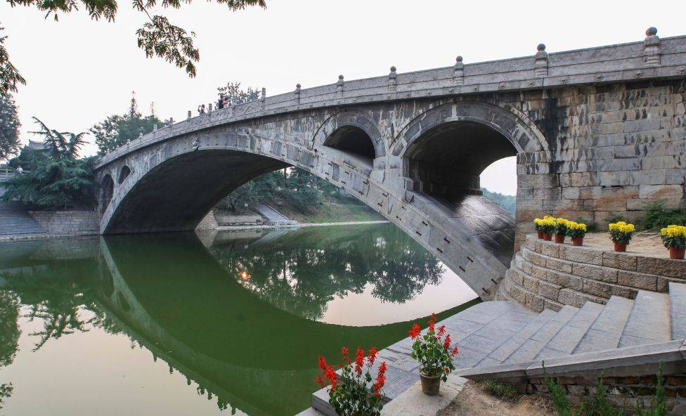 赵州桥是世界上现存最古老、跨度最大的单孔圆弧敞肩石拱桥,在大拱两肩,砌了四个并列小孔。全用青石砌成,全长64.4米,高8.65米,宽9米,跨度37.02米。赵州桥敞肩圆弧拱的出现,是石拱桥建筑史上的里程碑,是富有重要意义的伟大发明创造,给予拱桥的向前发展以巨大的生命力。