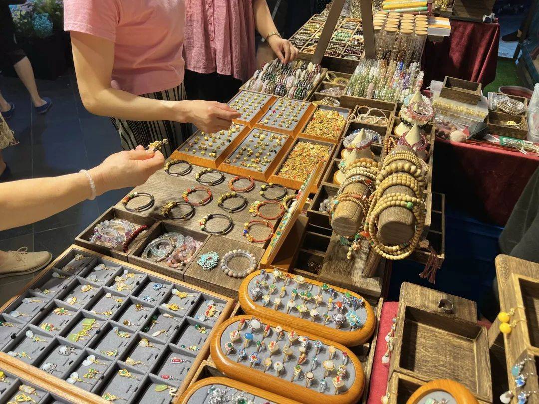 除了这些,还有许多手作潮物、文创商品、特色小吃集聚于此,浓浓的烟火气烘托出热闹的夏日氛围。