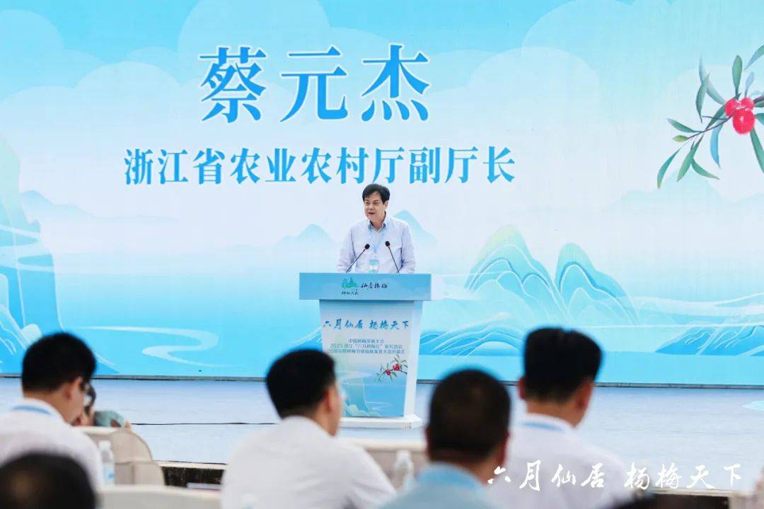 蔡元杰在致辞中说,仙居是浙江杨梅重点产区,是杨梅第一大县。一直以来,仙居县委、县政府高度重视杨梅产业发展,大力推广地域栽培新技术,积极挖掘文化资源,深耕塑造品牌,强化产品营销,并坚持数字赋能全产业链,使仙居杨梅成为浙江杨梅产业数字兴农、品牌强农的代表。同时,仙居举办杨梅节系列活动,将对杨梅产品的销售、扩大品牌影响力、挖掘产业多样化功能以及更好助推产业增效、农民增收等方面产生积极效应。