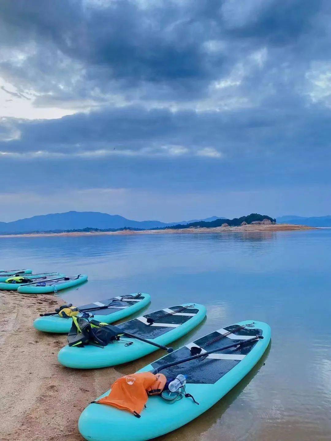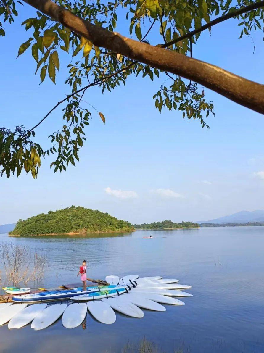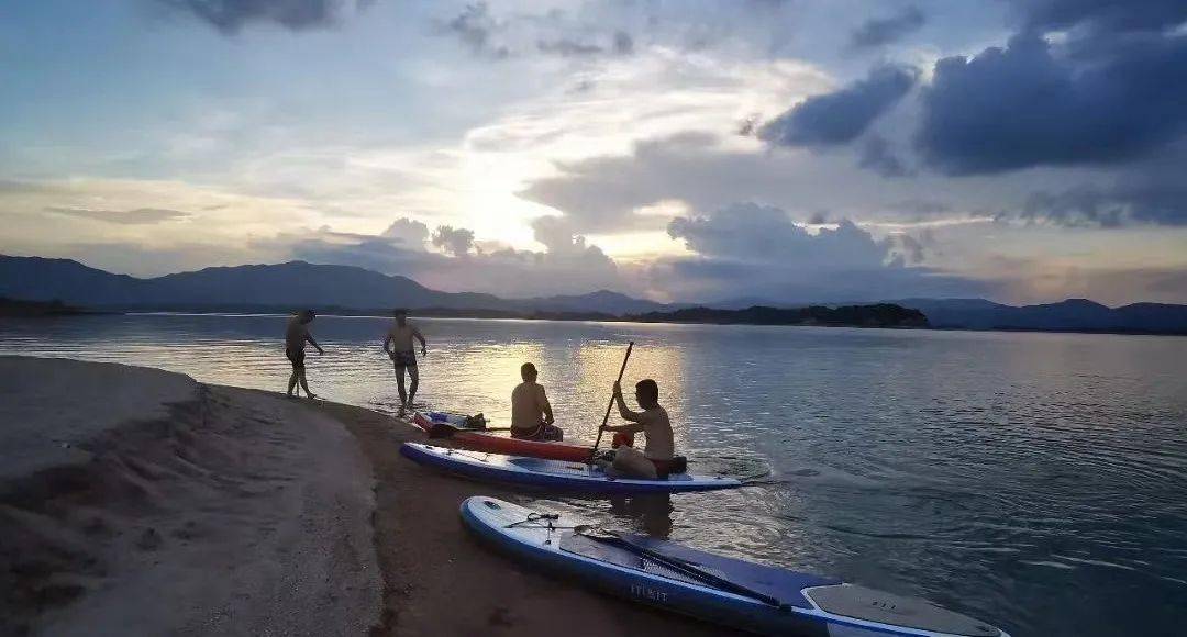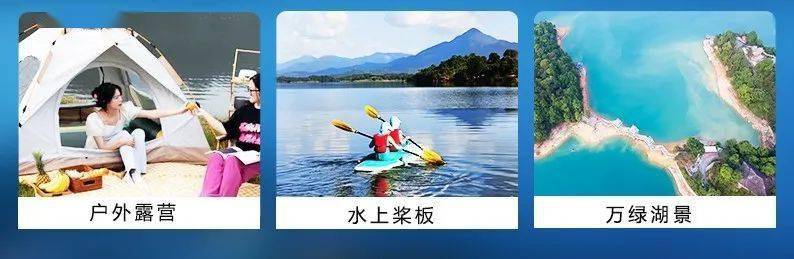 天上瑶池水,人间万绿湖。活动体验丰富 : 沙滩游泳,拍美照赏日出日落、围炉煮茶、户外烤肉、农家美食,桨板、音乐、越野车等。