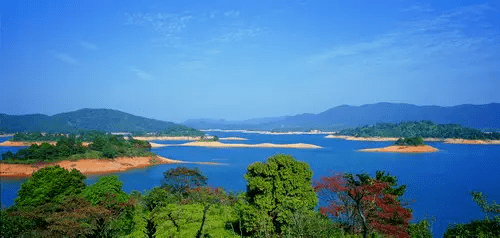 河源万绿湖:又名新丰江水库,与西双版纳、鼎湖山被人并称为地球北回归线“沙漠腰带上的东三奇”,被誉为“天上瑶池水,人间万绿湖”,“珠三角的后花园”。