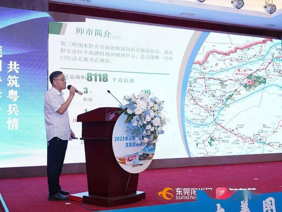 活动现场,与会人员共同观看了宣传片《图木舒克市正青春》《逐浪》《图木舒克之歌》《图木舒克市招商引资宣传片》,东莞市文化广电旅游体局党组书记、局长司琪,第三师图木舒克市文化体育广电和旅游局党组书记、局长李大伟先后致辞。