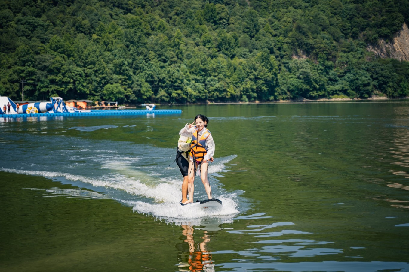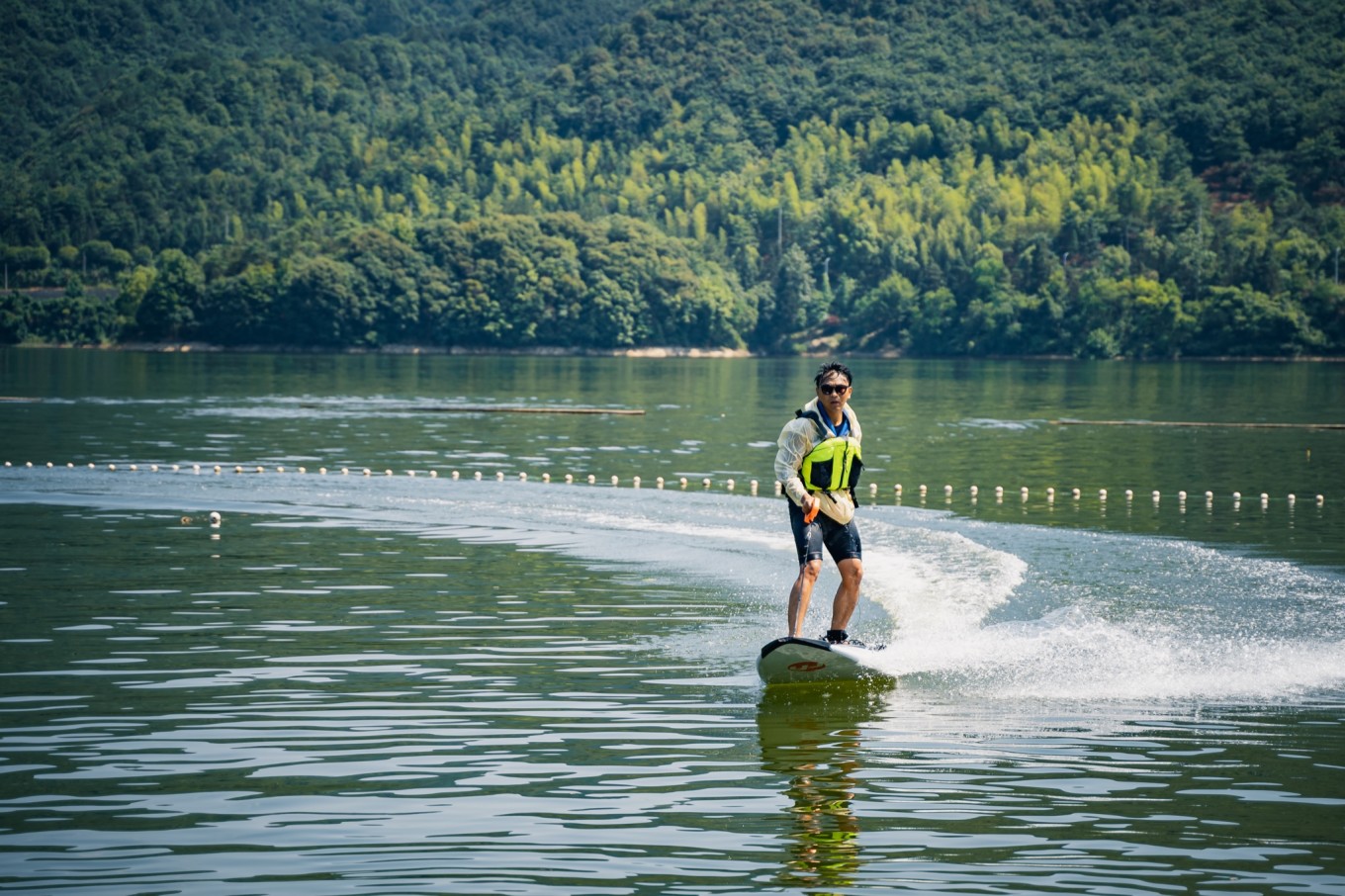 电动滑板湖中自动前行,喜欢冲浪的人,肯定不会拒绝这个项目!