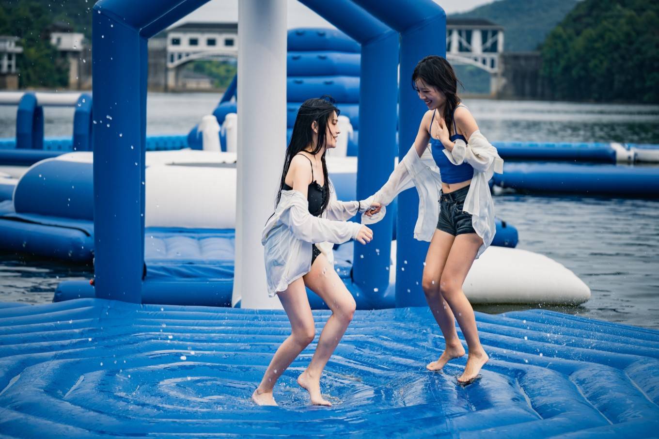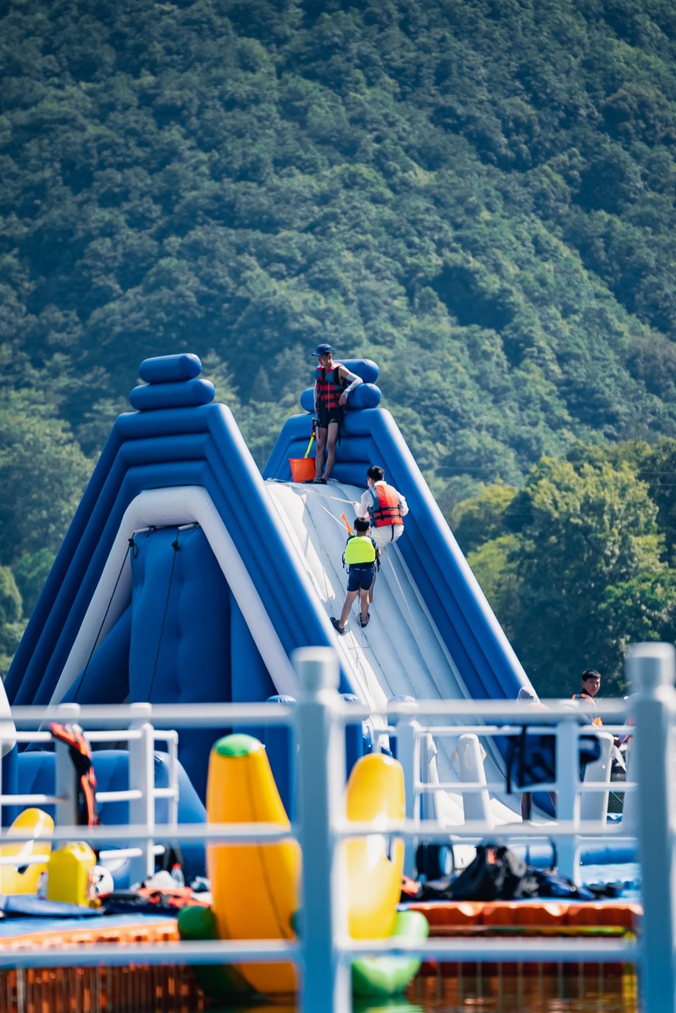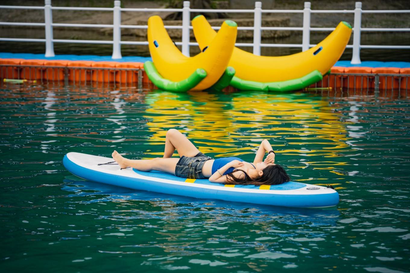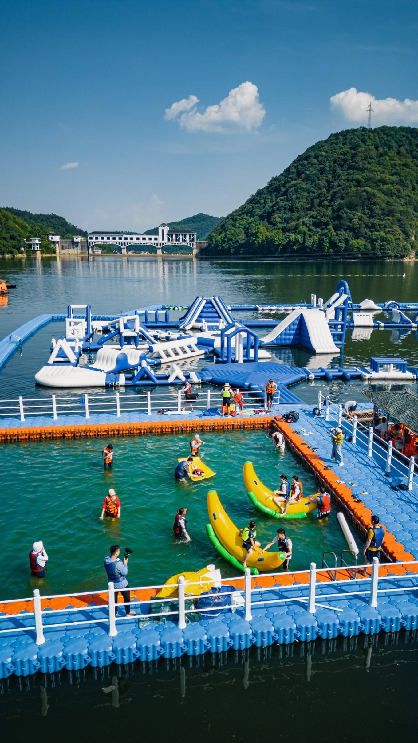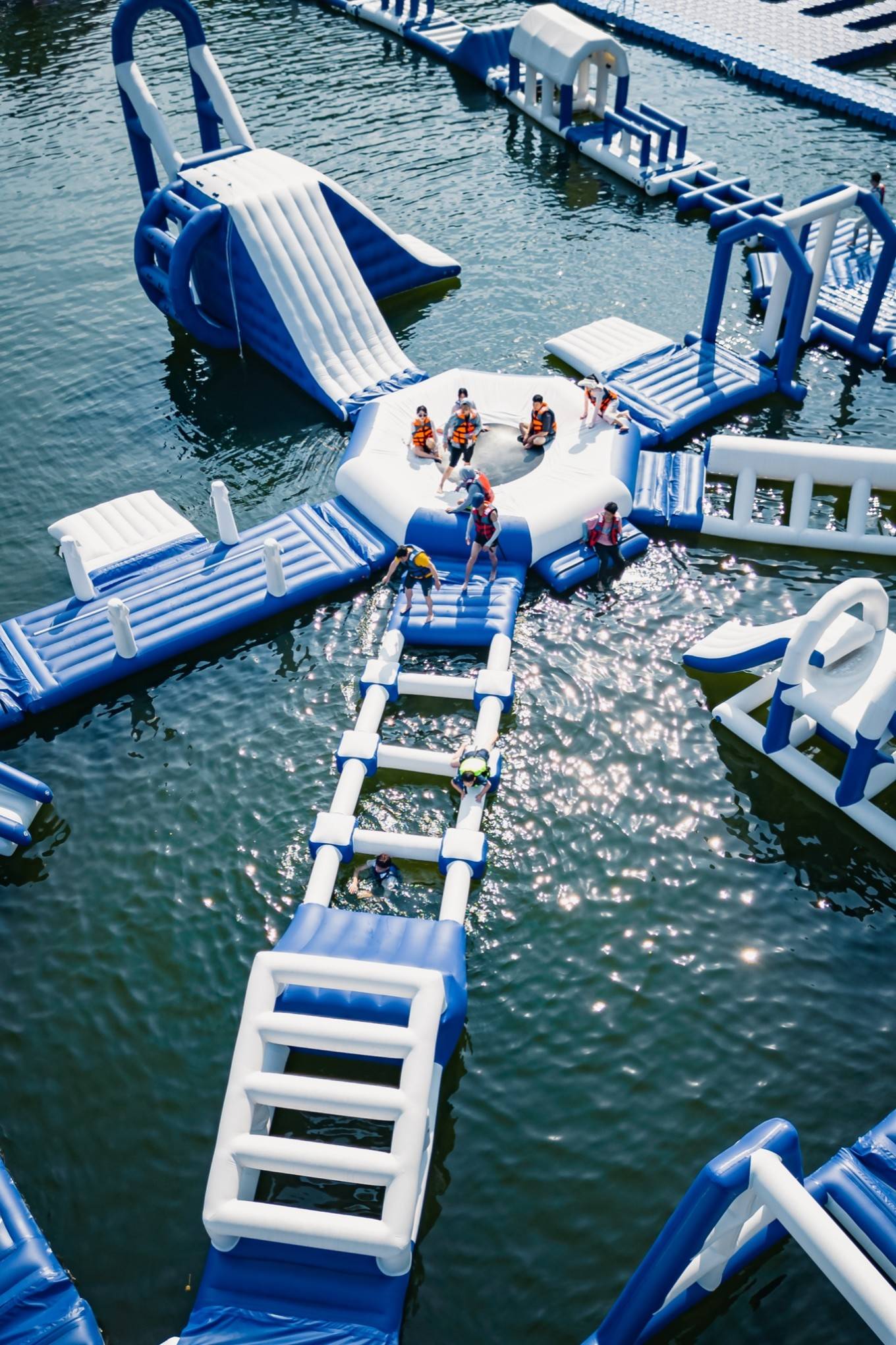 除了闯关项目,这里还有皮划艇,躺在上面航拍十分出片。