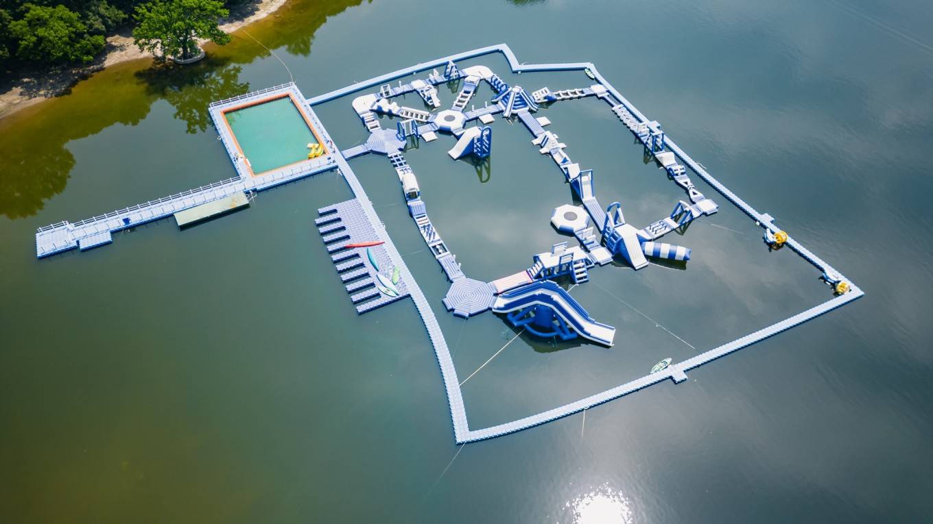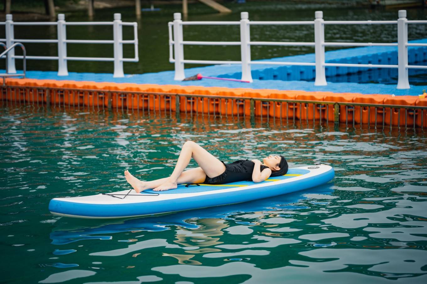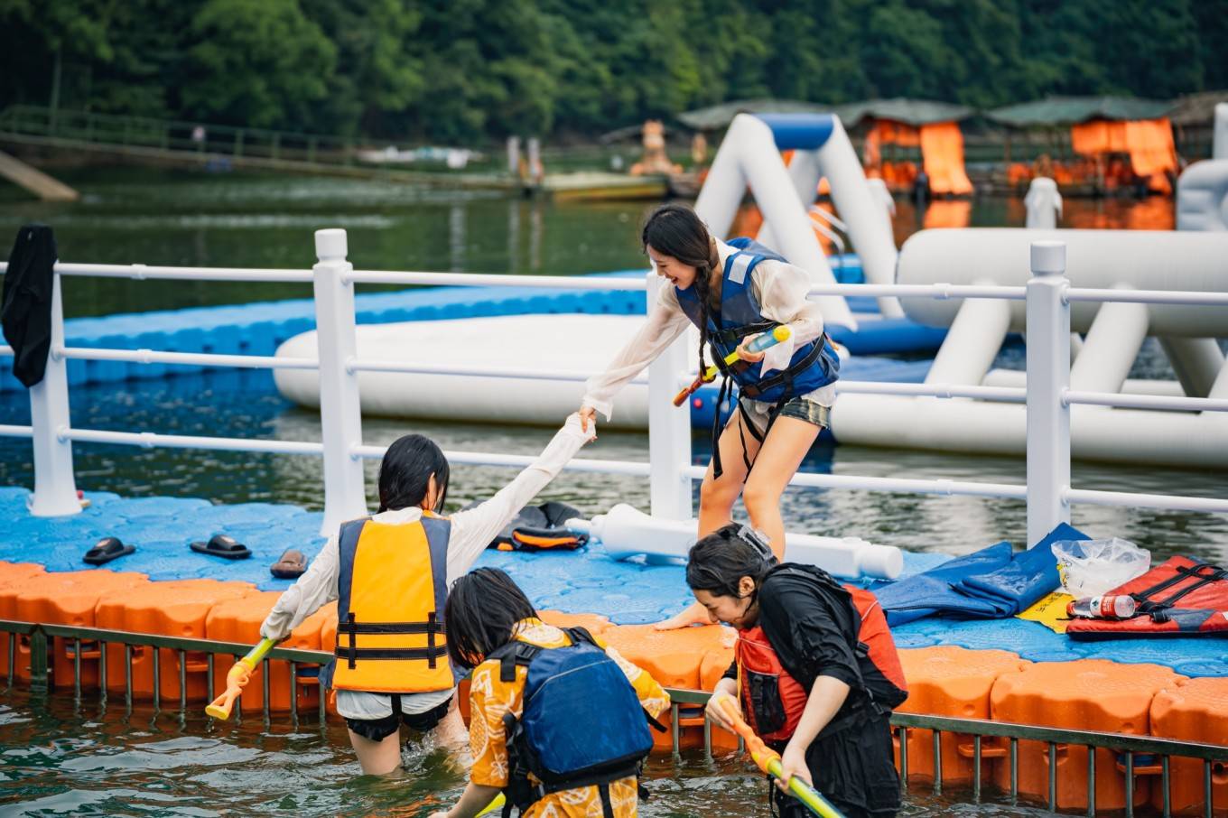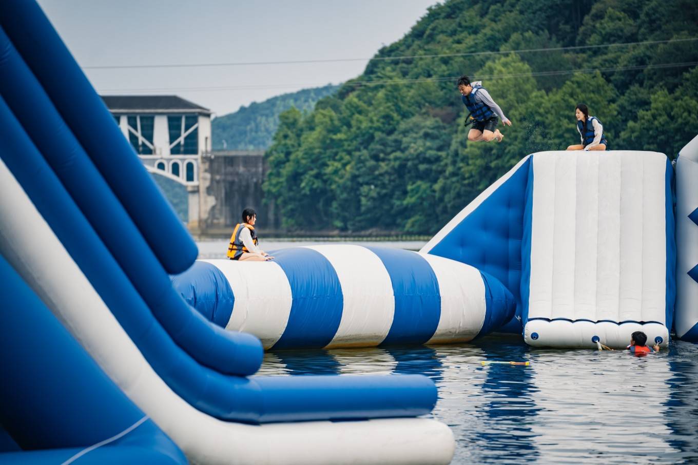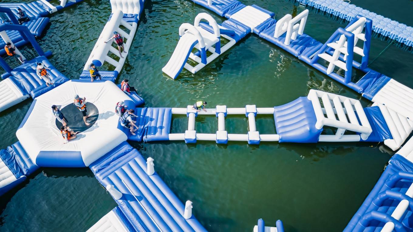 除了闯关项目,这里还有皮划艇,躺在上面航拍十分出片。