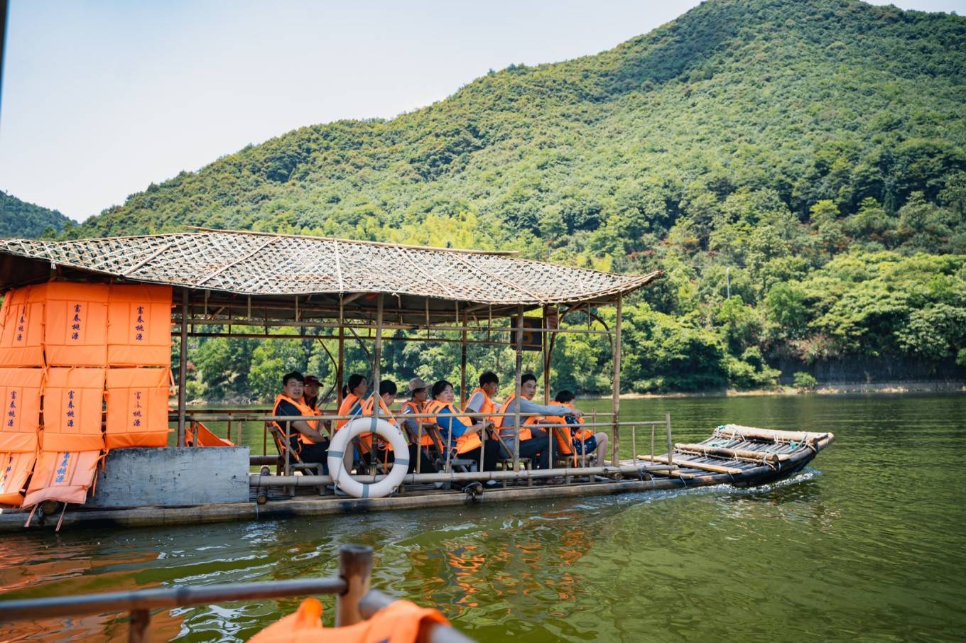 造浪乐园旁边就是竹筏,一船可容纳10人左右,随着师傅的发动机开启,加速行驶在碧绿的湖水中,两岸青山,远方的蓝天白云,穿梭在山林之间,忘却一切的烦恼。