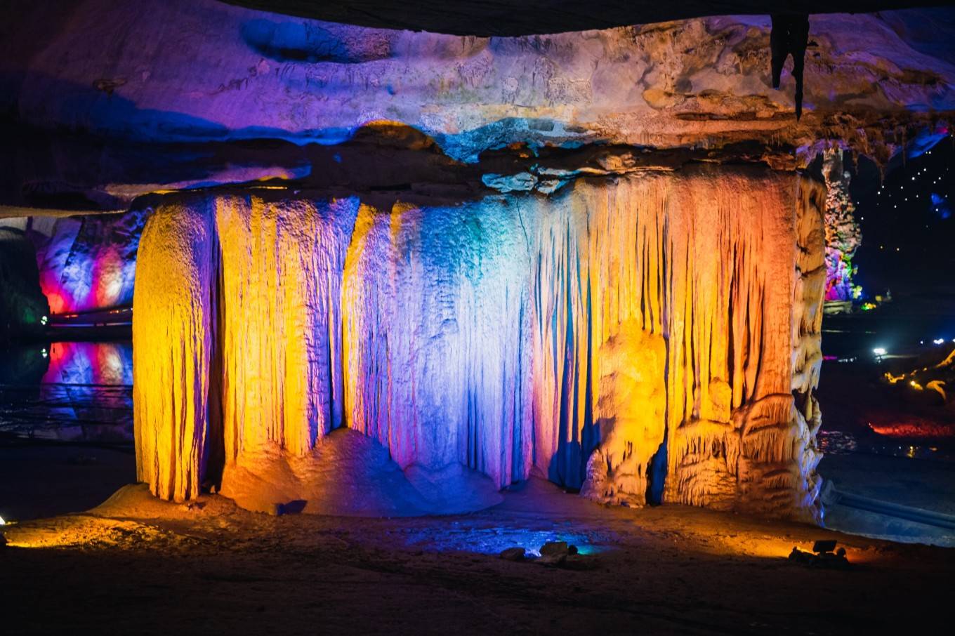 九霄碧云洞是这里的特色,占据着面积约2.8万平方米,洞内净空最高处24米,单厅面积之大,数国内罕见,被誉为“亚太第一大洞厅”,洞内四季如春的温度18℃更是让人留恋忘返。