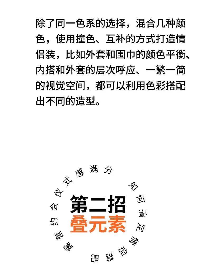 有的时候情侣相处时间久了会互相影响,不需要刻意去创造就能达到默契。当然,以上的搭配技巧都融入到了日常的穿搭中。时尚圈的穿搭风格五花八门,都市户外只是其中一种选择,甚至还有混搭款式,但无论选择什么,风格的统一才是情侣装的重点.