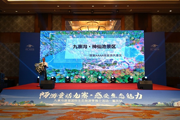 6月12日,“畅游童话九寨·感受生态魅力”九寨沟首届国际生态旅游季推介活动在重 庆举行。活动以成渝地区双城经济圈建设为“总牵引”,以文旅招商推介为载体,全方位、全时段、全覆盖展示九寨沟县自然风光、人文风情、民俗文化,稳步推进全县生态文化旅游产业发展,助力提升九寨沟县旅游市场的竞争力和吸引力。
