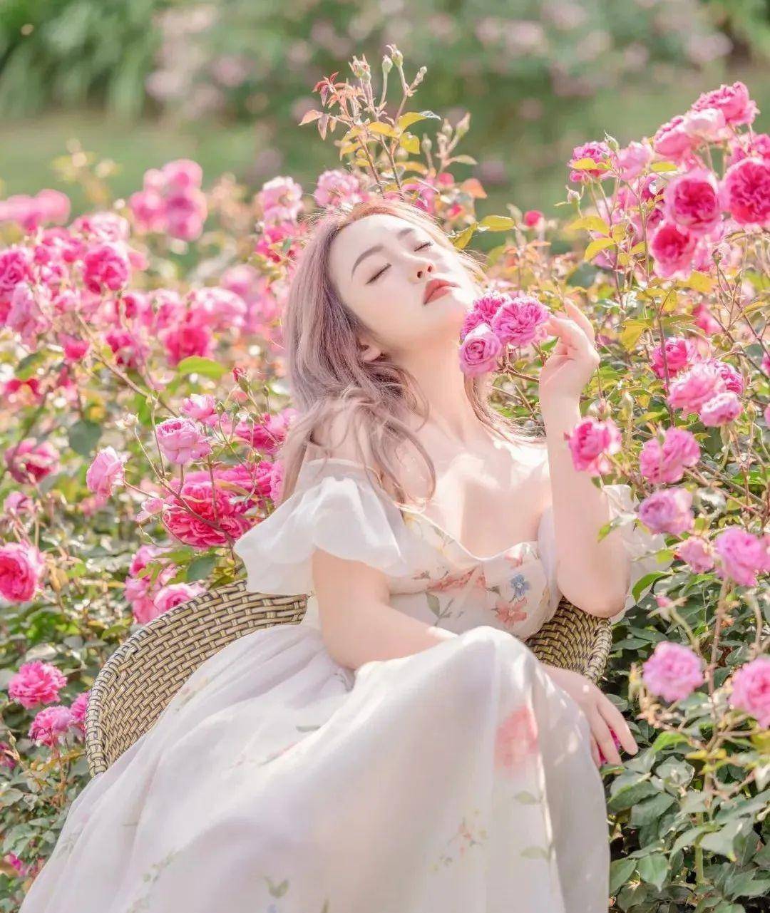去春游拍照,女人当在花丛中