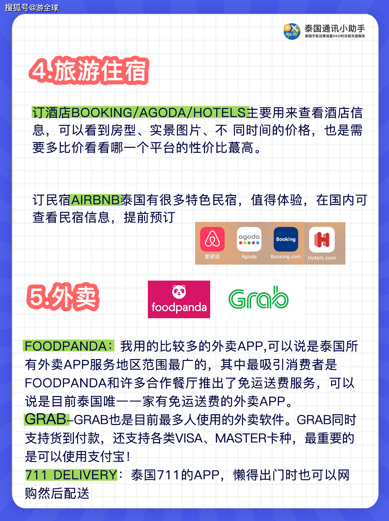 外卖: foodpanda:我用的比较多饿外卖 711 delivery:泰国711的app,懒得出门时也可以网购然后配送