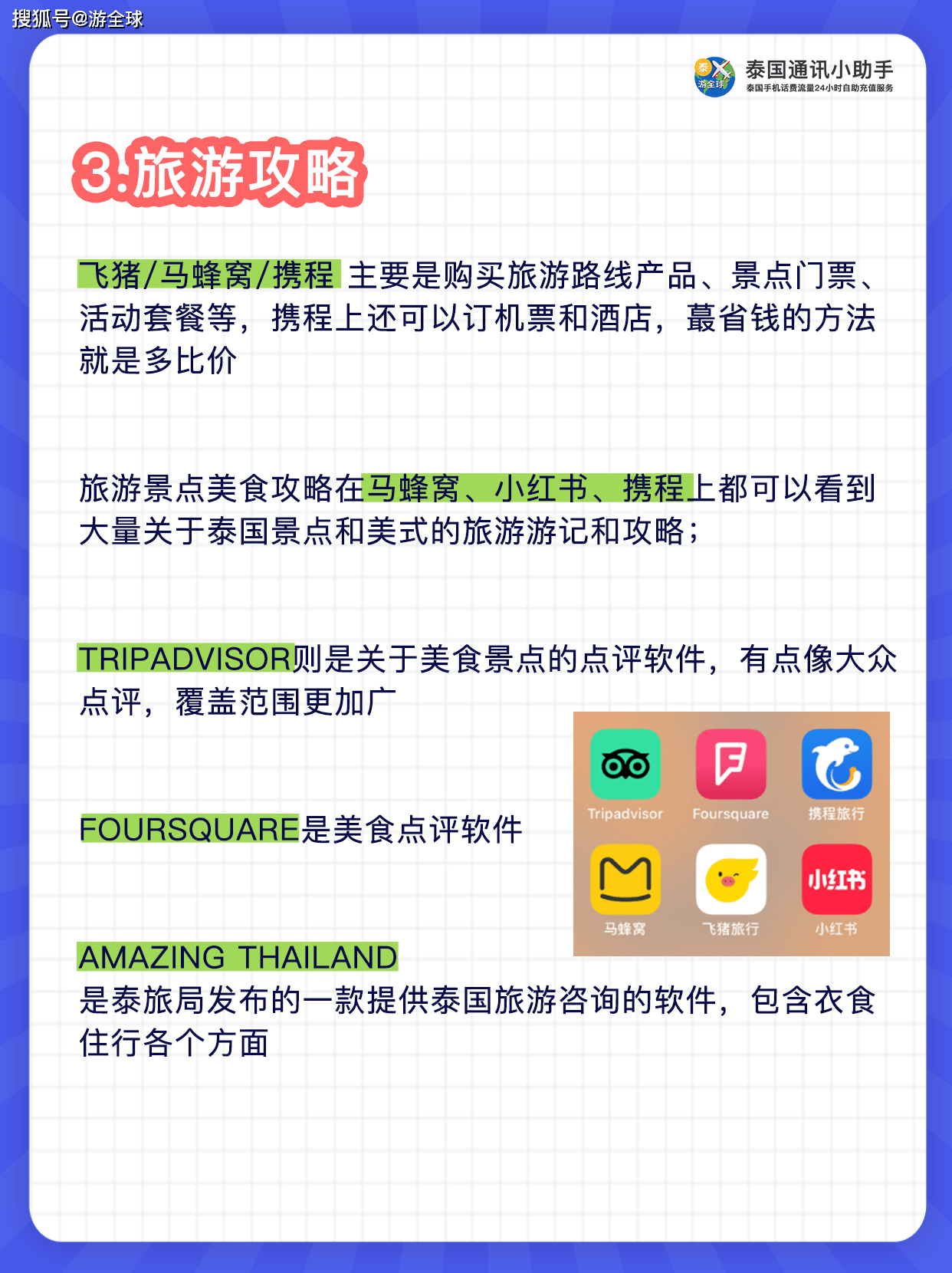美食类: 1.大众点评:泰国也可以用 2.tripadviser: 美食评价也非常全 3.Eatigo:可能会有折扣