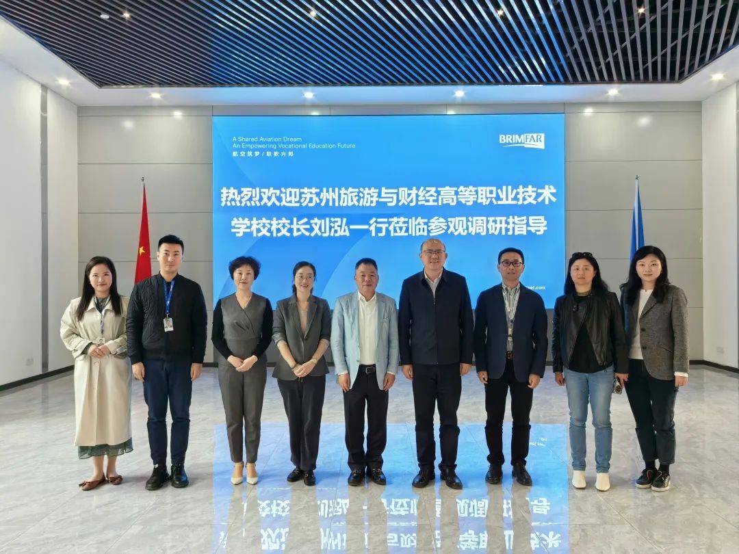 4月26日,为进一步开展产教融合,加强校企合作,苏州旅游与财经高等职业技术学校校长、党委副书记刘泓,成教中心主任殷琴,旅游管理系主任伍静,空中乘务专业负责人陈华萍一行莅临调研指导。民盟中央委员、全国航空职业教育合作联盟理事长、江苏无国界航空发展有限公司董事长黄飞建,副总裁王建华,尹涓热情接待。