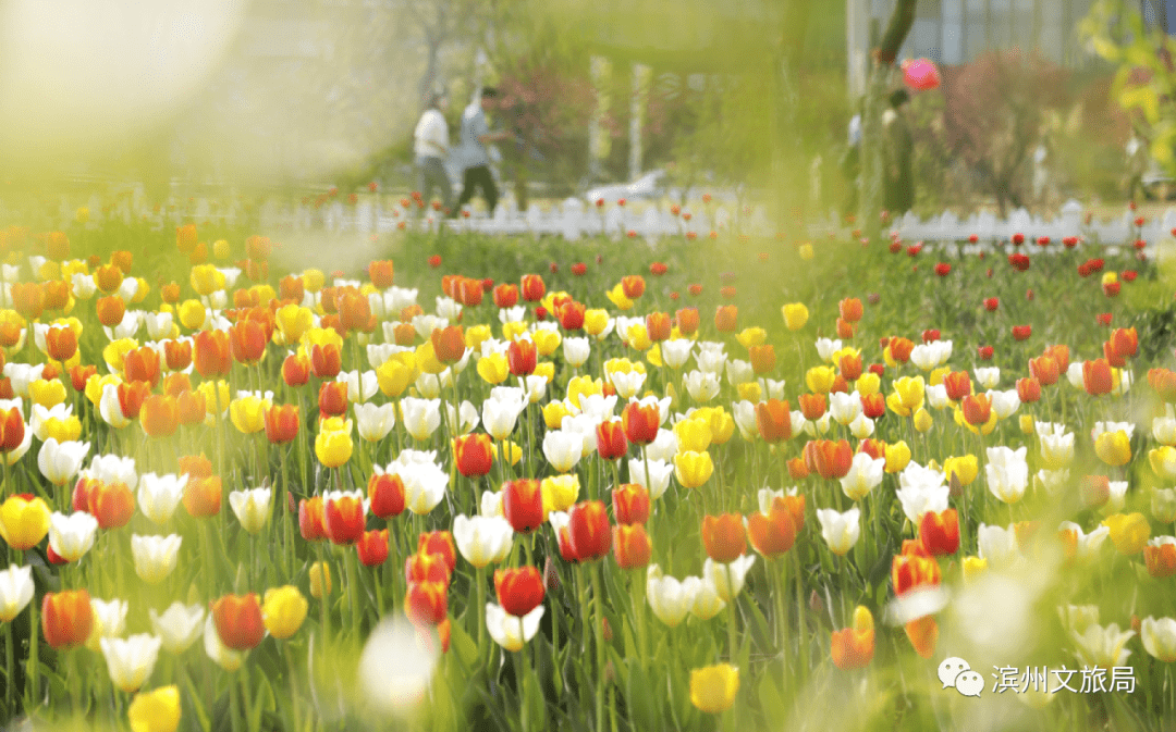 红色、粉色、金黄色、白色、橙红色的郁金香争相盛开,给市民带来芬芳与缤纷。