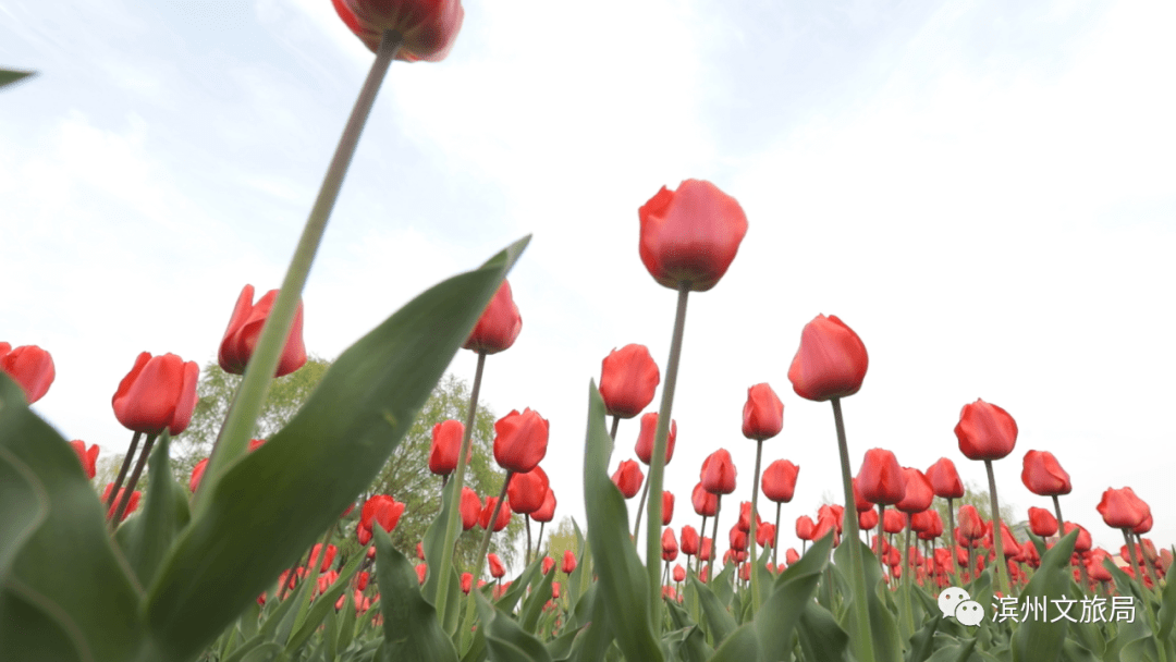 漫步花田,郁金香在春日阳光下变得更加清透鲜艳。花田周围有新柳摇曳、樱花绽放,东侧是贯穿南北的秦皇河水系,与西侧现代感十足的渤海先进研究院建筑群呼应成趣,四月期待与你在秦皇河畔相“郁”。