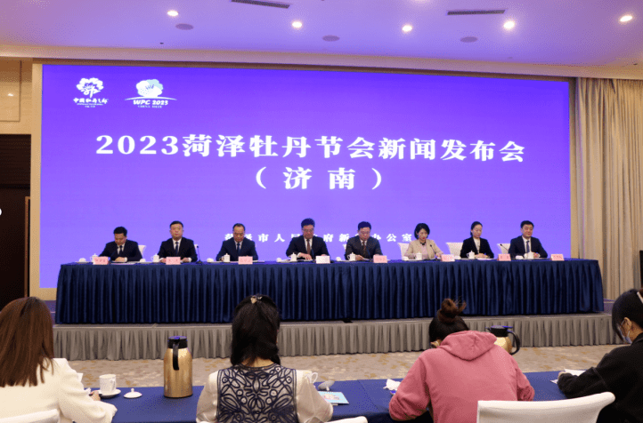 4月2日,2023世界牡丹大会和第32届菏泽国际牡丹文化旅游节新闻发布会(以下统称“2023菏泽牡丹节会”)在济南召开。市委常委、秘书长、2023菏泽牡丹节会组委会常务副主任王军介绍2023菏泽牡丹节会的相关情况,相关单位负责人就社会各界关心的问题回答了记者提问。