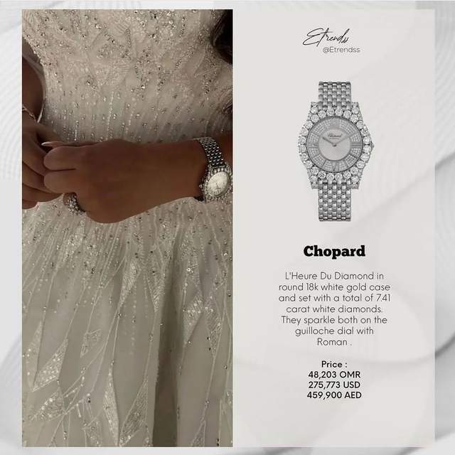 新娘还搭配了bling bling的萧邦钻石珠宝和百万钻表,壕气扑面而来。