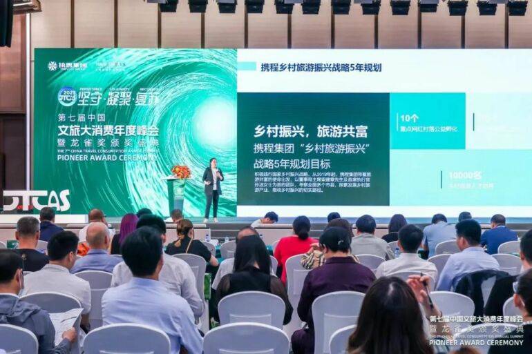 5月30日至31日,第七届中国文旅大消费年度峰会暨颁奖盛典在上海国家会展中心成功举办。本届大会由中国龙雀奖大消费组委会主办,执惠集团、上海博华国际展览有限公司协办,以“坚守·凝聚·复苏”为主题,汇聚了上千名与会嘉宾及行业媒体机构,省市级文旅集团、投资机构、目的地政府、OTA、规划设计、新业态企业、数十家省级旅游协会等企业或机构代表参会,特邀嘉宾及行业专家以主旨演讲、圆桌论坛、高端对话、颁奖典礼、答谢晚宴等形式探讨新形势下文旅消费新趋势、文旅发展新走向,结合新产品、新业态、新营销等话题,为文旅产业发展提供洞见参考。携程集团副总裁、携程研究院乡村振兴研究中心主任李珍妮受邀参会,并以《探寻中国乡村可持续未来》为主题发表演讲。