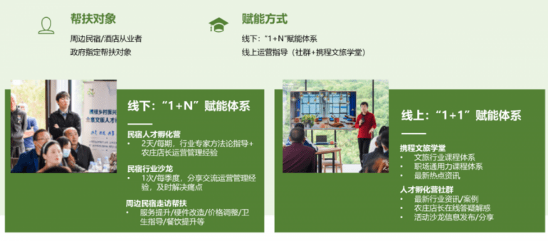 打造1+N和1+1赋能体系,助力乡村可持续周期化发展。在整个过程中,携程重点帮扶和赋能周边乡村,不仅仅是做携程度假农庄项目,而是尝试去带动周边整个目的地成长。