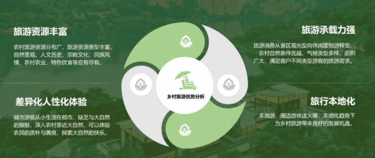 二十大报告指出,全面推进乡村振兴,最艰巨最繁重的任务仍然在农村,发展乡村特色产业,拓宽农民增收致富渠道,是发展乡村的方向之一;今年中央一号文件也持续提出《中共中央国务院关于做好2023年全面推进乡村振兴重点工作的意见》。走过300多个乡村,我们能清晰地了解到中国的乡村不同于城市,空间感巨大,拥有非常丰富的旅游资源,其文化差异和本地独特性明显,在空间、文化上有着非常大的旅游承载能力。