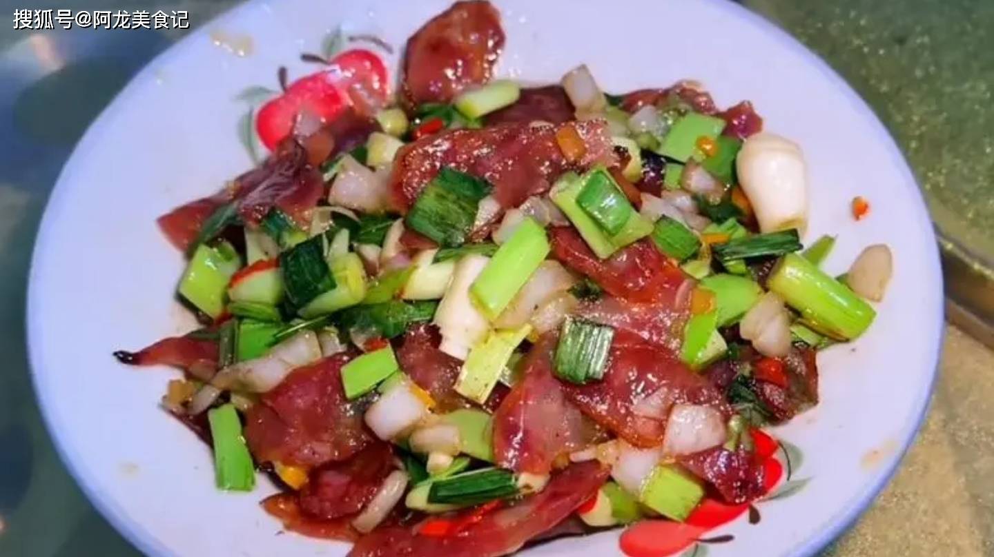 爱吃香肠的人对这道菜应该难以抗拒。腊肉是江西人每年过年都会自己制作的美食,吃的时候配上蒜苗炒一下,下饭下酒。香肠斜刀切片,热锅冷油放入香肠,加生姜小米辣炒均匀,几乎都不用放什么佐料。吃这道菜都需要多吃两碗米饭。三、麻辣猪血