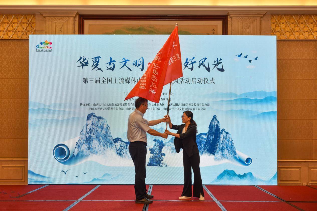 6月13日,“华夏古文明 山西好风光”第三届全国主流媒体山西行大型采风活动在太原迎泽宾馆正式启动。山西省文化和旅游厅、山西日报社相关负责人,全国50余家主流媒体代表等出席了启动仪式。山西省文化和旅游厅副厅长李贵宣布活动正式启动,并为媒体团代表授旗。本次活动特别推出八条康养、研学线路,主流媒体代表将启程采风,以温暖的画面、生动的笔触、鲜活的镜头,多角度、立体化传播山西文旅全方位推动高质量发展成果,讲好“康养”故事,推广“研学”精品。